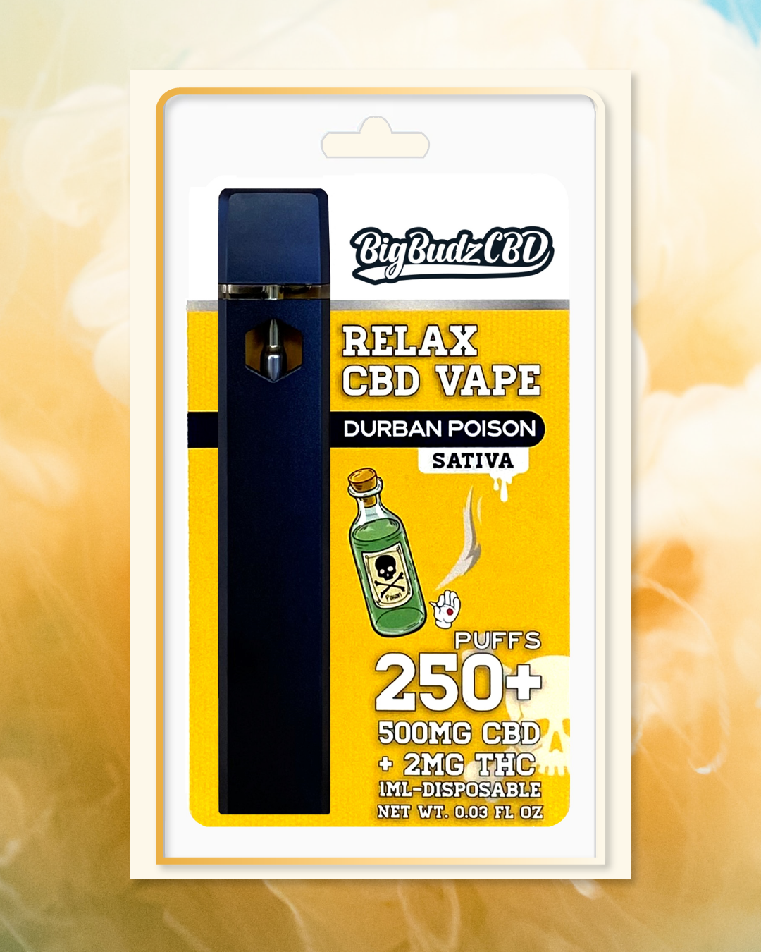 The Durban Poison 500mg Full Spectrum CBD Disposable Vape Pen is the perfect choice for those seeking a convenient and effective way to consume CBD. The Durban Poison strain offers a sweet and earthy flavor profile with uplifting and energizing effects. With 500mg of CBD per pen, it provides a potent dose of CBD that can help promote a sense of calm and relaxation, reduce stress, and alleviate pain.